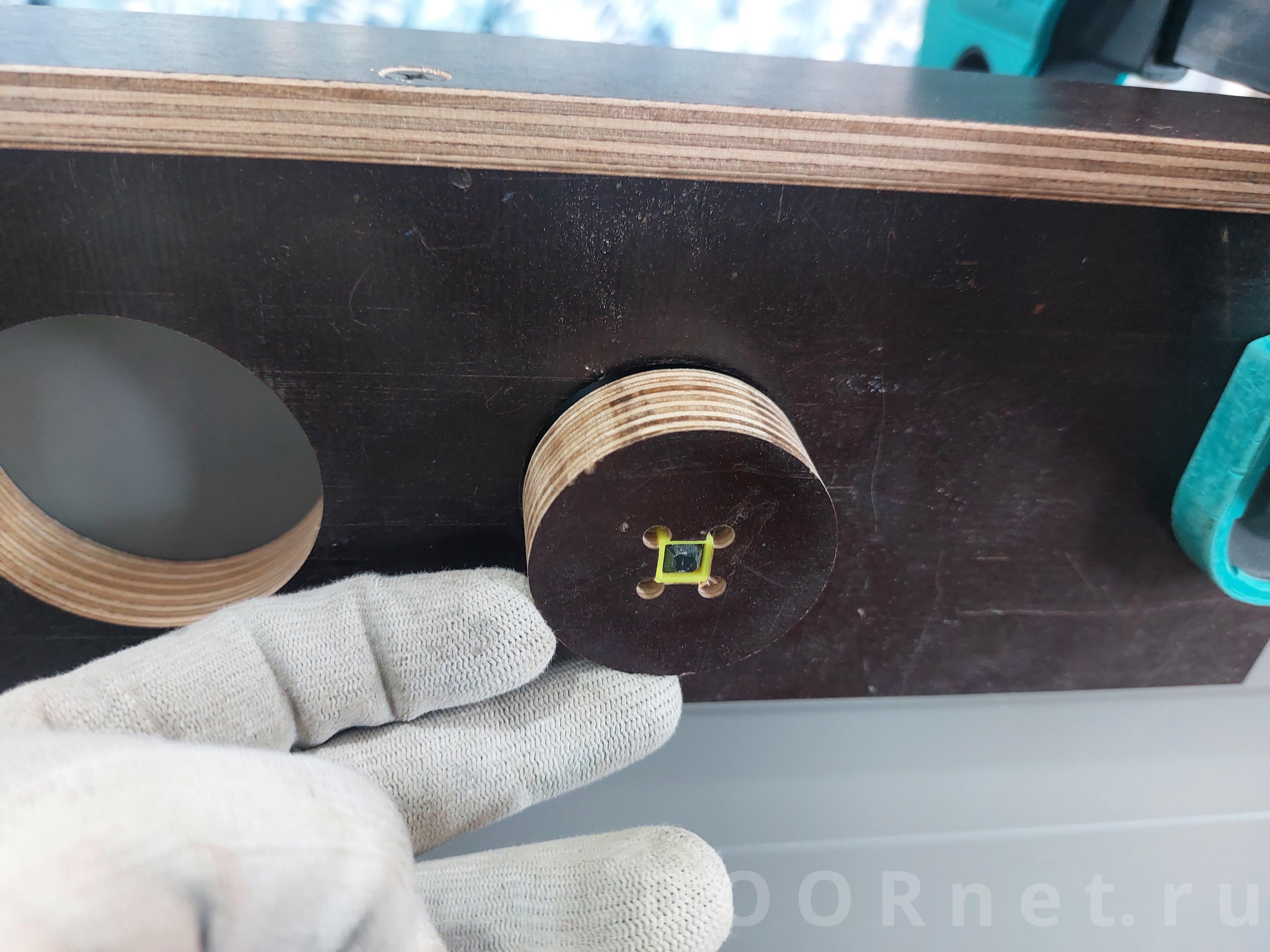 Фанера + ЧПУ (помог знакомый). Точные размеры были только в диаметре и 50,5мм. до центра отверстия. Запас на диаметр был + 8мм., т.к. активный пользователь шпс и все копировальные кольца сделаны под эту разницу. Далее 11-ое кольцо + 3мм. спиральная раскроечная фреза. Сама работа стандартная: сделал черновые отверстия по карте разметки под обычные ручки для пылеудаления и центровки "шаблона". Квадраты пластиковые + переходной пустотелый с 6 на 8мм. Далее все по фото.