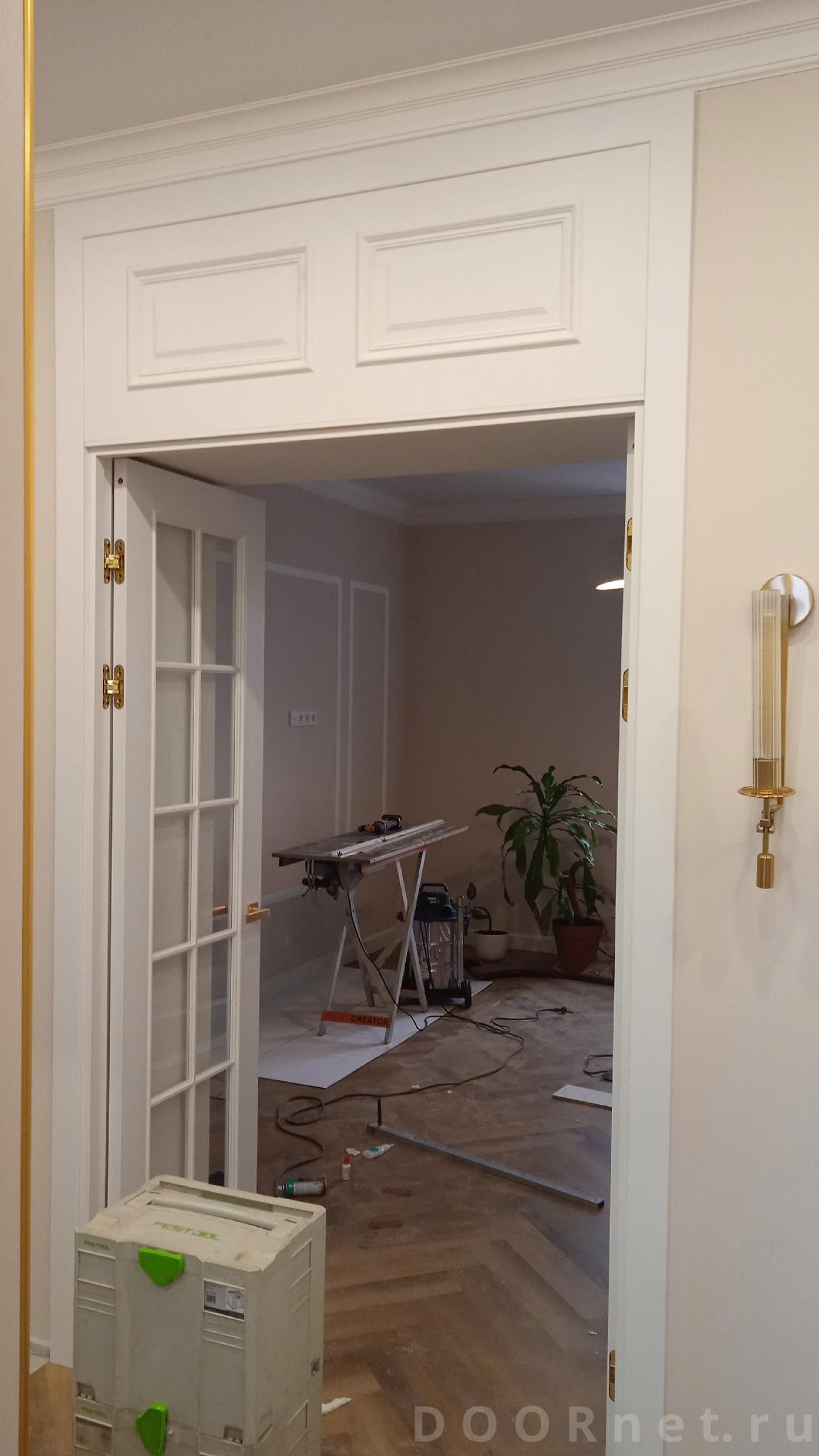 Двери "Эстет". Высота полотен 2200мм. Ширина откосов 470мм. Фальш фрамуга под потолок. Откос входной группы 360мм. Для монтажа фальш фрамуги возникла необходимость изменения толщины изделия на 2,5мм...