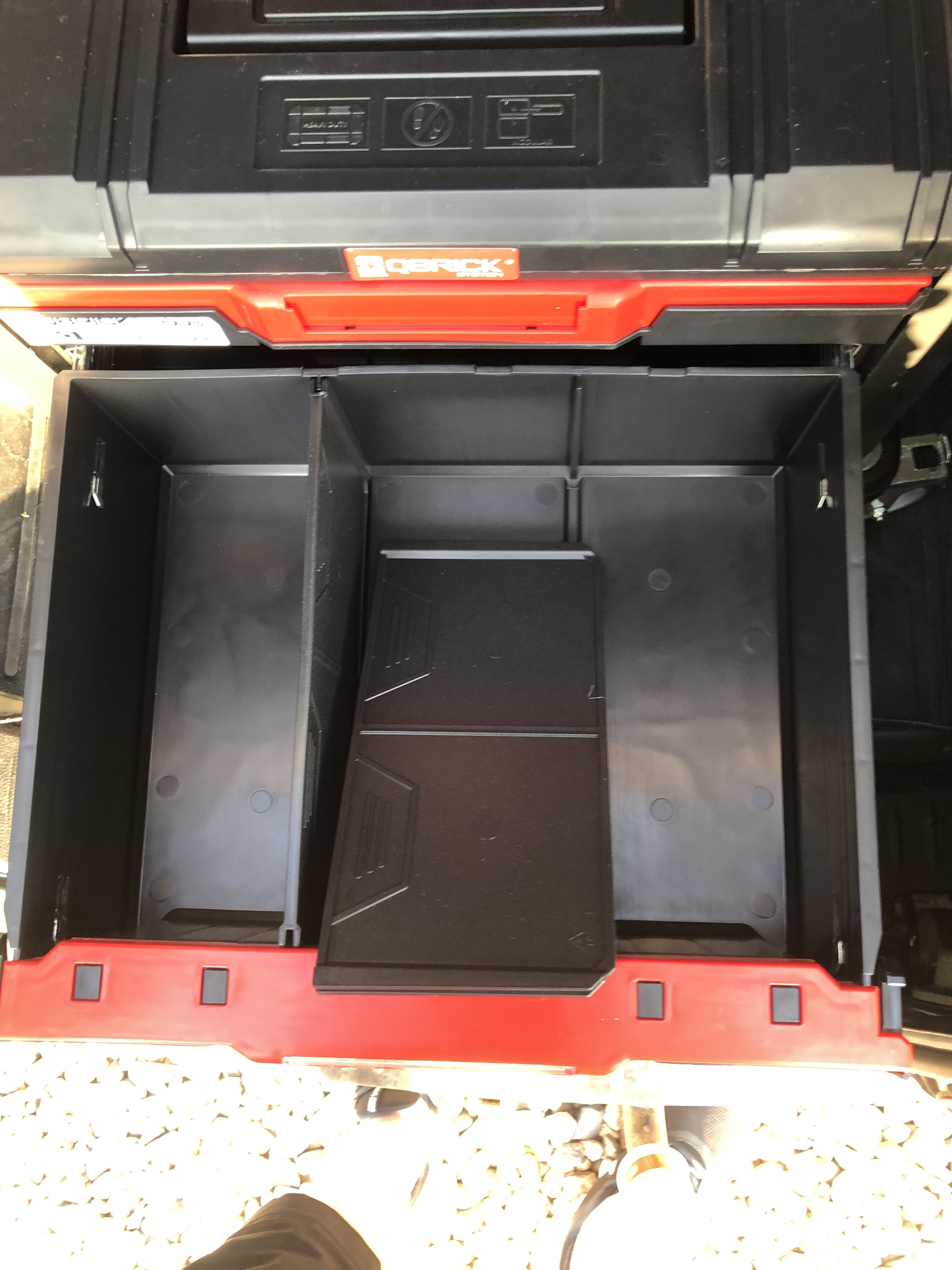 вот такой у меня комплект) весь акк. инструмент влезает. очень удобные выдвижные ящики, просто за собой катаю.на них стоит органайзер с саморезами , он с ручкой , за неё и катаю.выше стоит просто открытый ящик. для сетевого инструмента использую qbrick system two.
